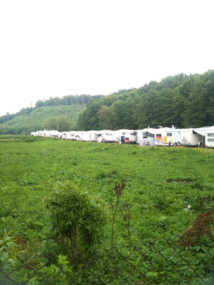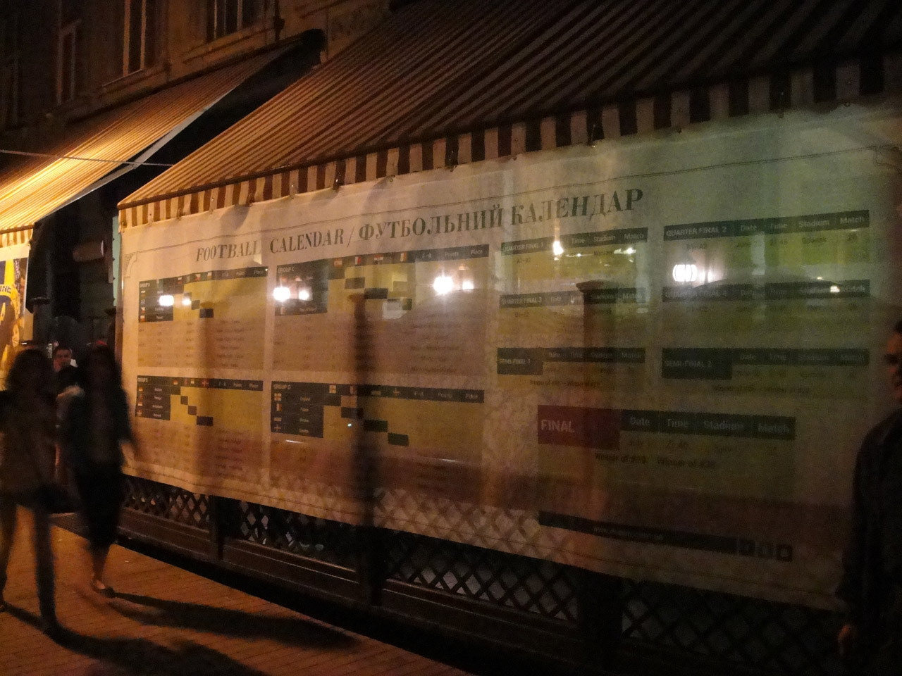 Endlich in Kiew angekommen! Es ist der fünfte Tag unserer Reise und von meinem Fenster schaue ich auf den Dnepr. Mit unserem Wohnmobil sind wir bei ukrainischen Ruderern untergekommen. Direkt nebenan campen einige hundert Schweden im offiziellen Fancamp. Im Gegensatz zur Nationalelf trägt die schwedische Mannschaft zwei Spiele nacheinander in Kiew aus, weshalb das Camp deutlich größer ausgelegt ist als das in Lemberg. Und überhaupt: in Kiew ist überhaupt alles viel größer, denn mit ihren 2,8 Millionen Einwohnern ist die Stadt gerade einmal ein bißchen kleiner als Berlin. In etwa einer Stunde brechen wir auf, um uns das Ganze live und in Farbe anzuschauen, weshalb es ersteinmal Impressionen unserer ersten beiden Stopps gibt.