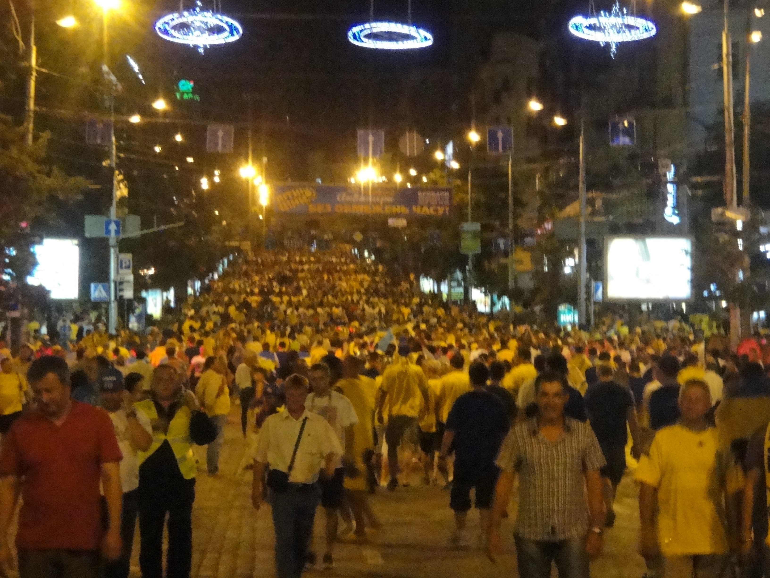 Von Kiew ging es dann weiter nach Charkiw, wo wir in diesem Moment im Internetcafe sitzen und unsere Texte verfassen. Diese letzte Etappe in Richtung Osten war wilder als die ersten, denn die Straßen sind gerade noch in Bau. Gefühlt stehen alle Baumaschinen der Ukraine auf diesen 500 Kilometern und es würde mich nicht überraschen, wenn sie bei unserer Abreise am Freitag fertig gebaut wären. Charkiw selbst ist großartig: wir logieren an einem Naherholungsgebiet samt See mitten in der Stadt, das als Fancamp umgebaut wurde. Es gibt kaltes Bier, noch kältere Duschen und jede Menge Wohnmobile. Wir sind nicht die einzigen, die den weiten Weg mit dem Trailer zurückgelegt haben. Mein nächster Bericht wird auf jeden Fall mit Fotos gespickt.